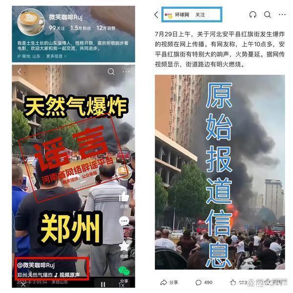经查,郑州市近期未发生自然气爆炸事故。网罗账号“浅笑咖啡Ruj”将2023年7月河北衡水市安平县自然气爆炸现场图片拼接成短视频,冠以“郑州自然气爆炸”标题在网站平台发布。